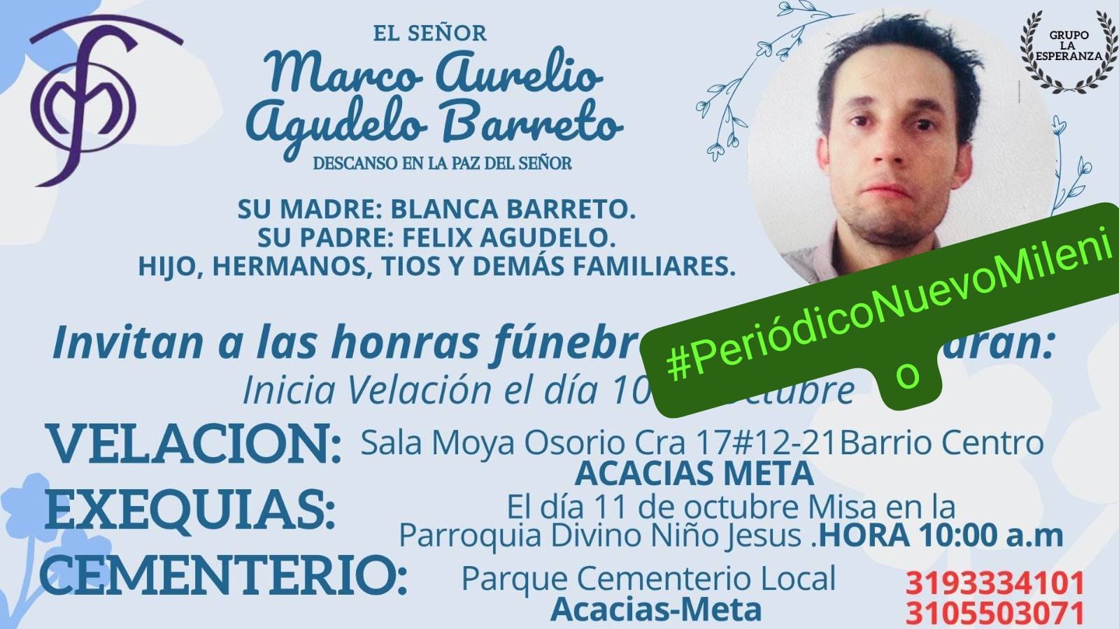 El día miércoles 8 de octubre fue asesinado Marco Aurelio Agudelo Barreto, de 46 años de edad.