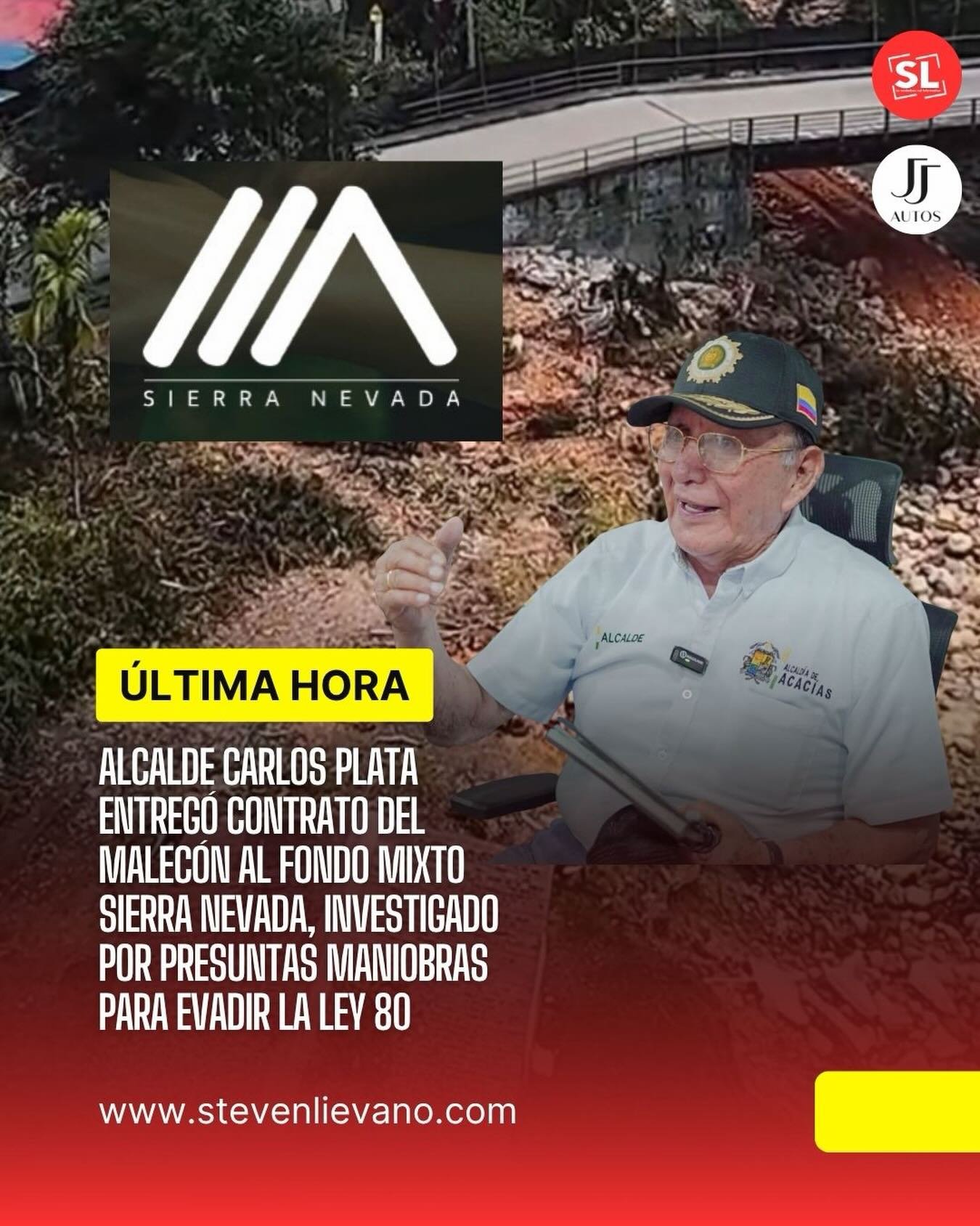 El alcalde de Acacías, Carlos Plata, adjudicó el contrato para la recuperación del Malecón del municipio por un valor superior a los 22 mil 700 millones de pesos al Fondo Mixto Sierra Nevada, una entidad que ha sido objeto de cuestionamientos a nivel nacional.